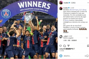 “祝贺恩里克和巴黎,这是一场令人难忘的胜利!欧冠冠军实至名归,无论是比赛风格还是进球方式,都堪称足球的典范。”