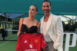 体育资讯7月8日讯 曼联官推今天晒照,发出了白俄罗斯女子网球运动员萨巴伦卡与名宿里奥-费迪南德的合照。
