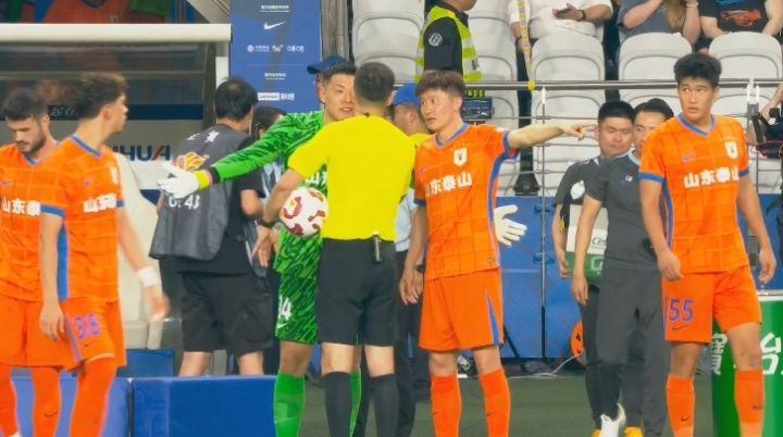 不解判罚!下半场开始前,王彤与王大雷仍向麦麦提江投诉此前手球